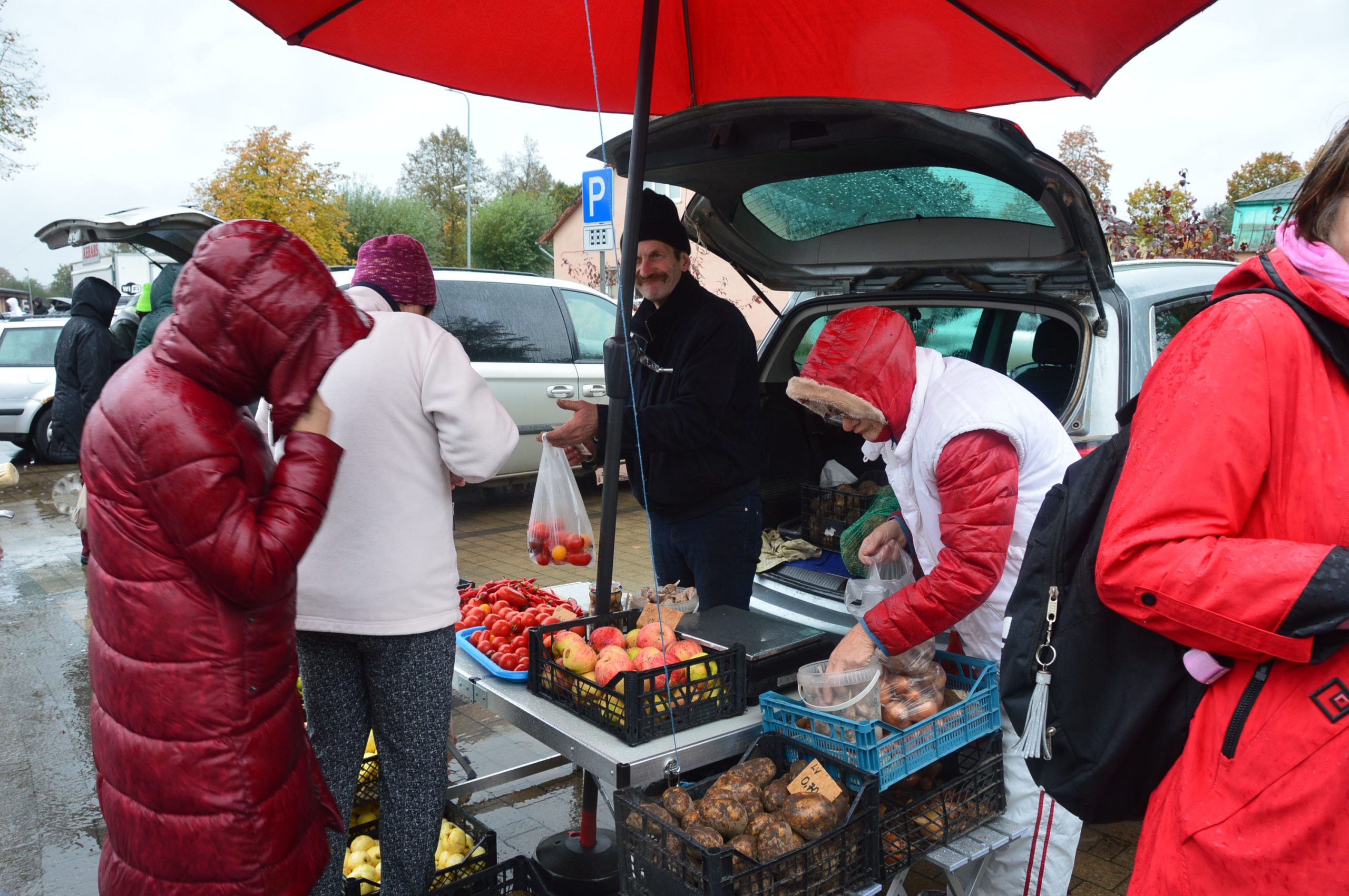 14. oktobrī Skrundas tirgū bija jūtama darbīga gaisotne. Tur no malu malām bijām sabraukuši tirgotāji, lai ikvienu iepriecinātu ar dažādiem gardumiem, rudens veltēm un citiem labumiem. Skrundas kultūras darba organizatore Aivita Staņeviča atzīst, ka rudens tirgus nu jau ir kļuvis par tradīciju. Skrundā tas notiek trešo reizi. Šogad tas ir ļoti ražens – netrūkst ne lietus, ne vēja, bet pats galvenais, ka visiem ir labs noskaņojums un vēlme pirkt un pārdot. Uz vietas varēja iegādāties dažādas rudens veltes, kā augļus un dārzeņus, ziedus, stādus, zivis, maizi, sīrupus, medu un citus labumus. Katrs tirgotājs bija parūpējies par savu ražoto un audzēto produkciju ar ko piesaistīt pircēju uzmanību. Arī vietējie iedzīvotāji un pircēji no tuvākajām pilsētām atzina, ka lietus nemaz netraucē baudīt tirgus noskaņu. Par lustīgu noskaņu un muzikālu noformējumu gādāja duets “’Līdzsvars”. Tirgū varēja satikt gan vietējos tirgotājus, gan kaimiņus no Kuldīgas puses un viesus no Grobiņas, Rīgas un Lapmežciema.