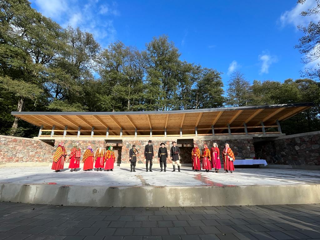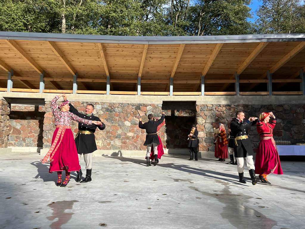 Svinīgajā estrādes atklāšanā piedalījās Kuldīgas novada domes izpilddirektores pienākumu izpildītāja Agnese Buka, Alsungas pagasta pārvaldes vadītāja Santa Kreičmane, pārvaldes darbinieki un pagasta iedzīvotāju. Estrādi ar savām skanīgajām balsīm piepildīja Suitu sievas un Suitu vīri, kā arī skatuvi ar jestru deju soli iemēģināja lieli un mazi Suitu dejotāji, vēlot visiem arī turpmāk šeit pulcēties uz lustīgām zaļumballēm, izrādēm un koncertiem.