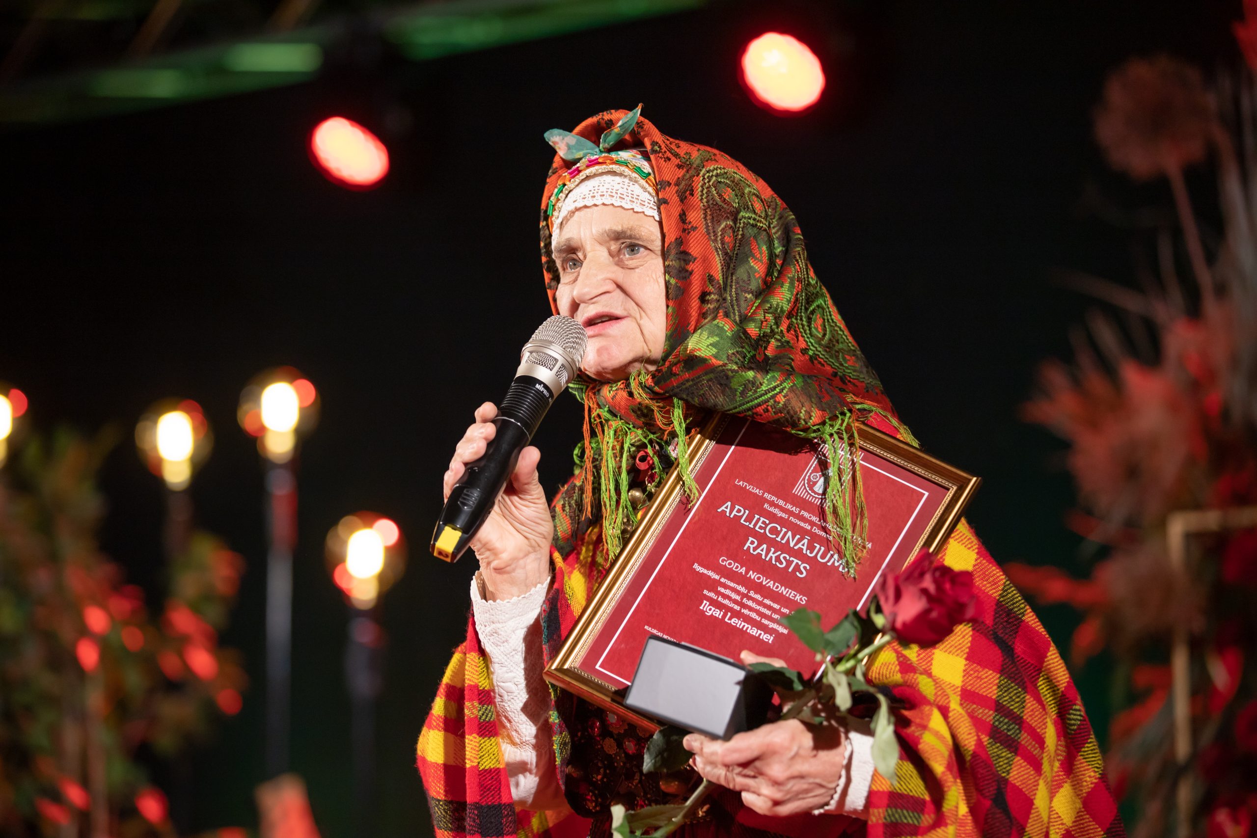Pateicībā par nozīmīgo ieguldījumu un īpašiem nopelniem Kuldīgas novada labā, augstāko apbalvojumu “Goda novadniece” šogad saņem ilggadēja ansambļu “Suitu sievas” un “Suitu vīri” vadītāja, folkloriste un suitu kultūras vērtību sargātāja ILGA LEIMANE.