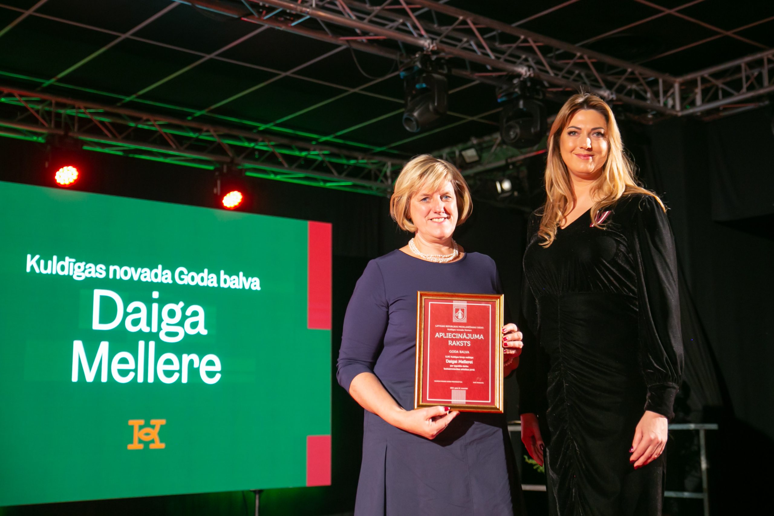 Latvijas Lauku konsultāciju un izglītības centra (LLKC) Kuldīgas biroja vadītāja DAIGA MELLERE Goda balvu saņem par ieguldīto darbu lauksaimniecības attīstības jomā. Daiga ir sava novada patriote, aktīvi iesaistās pašvaldības rīkotajos sabiedriskā labuma pasākumos, ir viena no Viedā ciema idejas pamatlicējām mūsu novadā. Sniedz atbalstu un aizstāv novada lauksaimnieku intereses, izglīto un dalās praktiskā pieredzē ar bērniem, jauniešiem un pieaugušajiem, popularizē lauku dzīvi jauniešu vidū, rīkojot izglītojošas aktivitātes. Bijusi vairāku novadam nozīmīgu darba kolektīvu vadītāja. Ar atbildības sajūtu jau vairāk nekā 10 gadus vada LLKC Kuldīgas biroju, kurš vairākkārt novērtēts kā gada labākais birojs starp 26 LLKC birojiem. Darba ietvaros organizē dažādus seminārus, mācības un pieredzes apmaiņas braucienus gan Latvijā, gan ārpus Latvijas, tādējādi sniedzot iespēju gūt zināšanas un pieredzi. Kolēģi augstu vērtē Daigu kā vadītāju un atzīst, ka viņa ir kā mamma, kas iedrošina mesties nezināmajā, sniedz iespēju augt, mācīties un gūt arvien zināšanas. Daiga ir vadītāja pie kuras jebkurā brīdī var griezties pēc palīdzības un rast risinājumu problēmai. Cilvēks ar plašu sirdi un dvēseli, ar kājām uz zemes, ar skatu nākotnē un ar rokām vienmēr darbos.