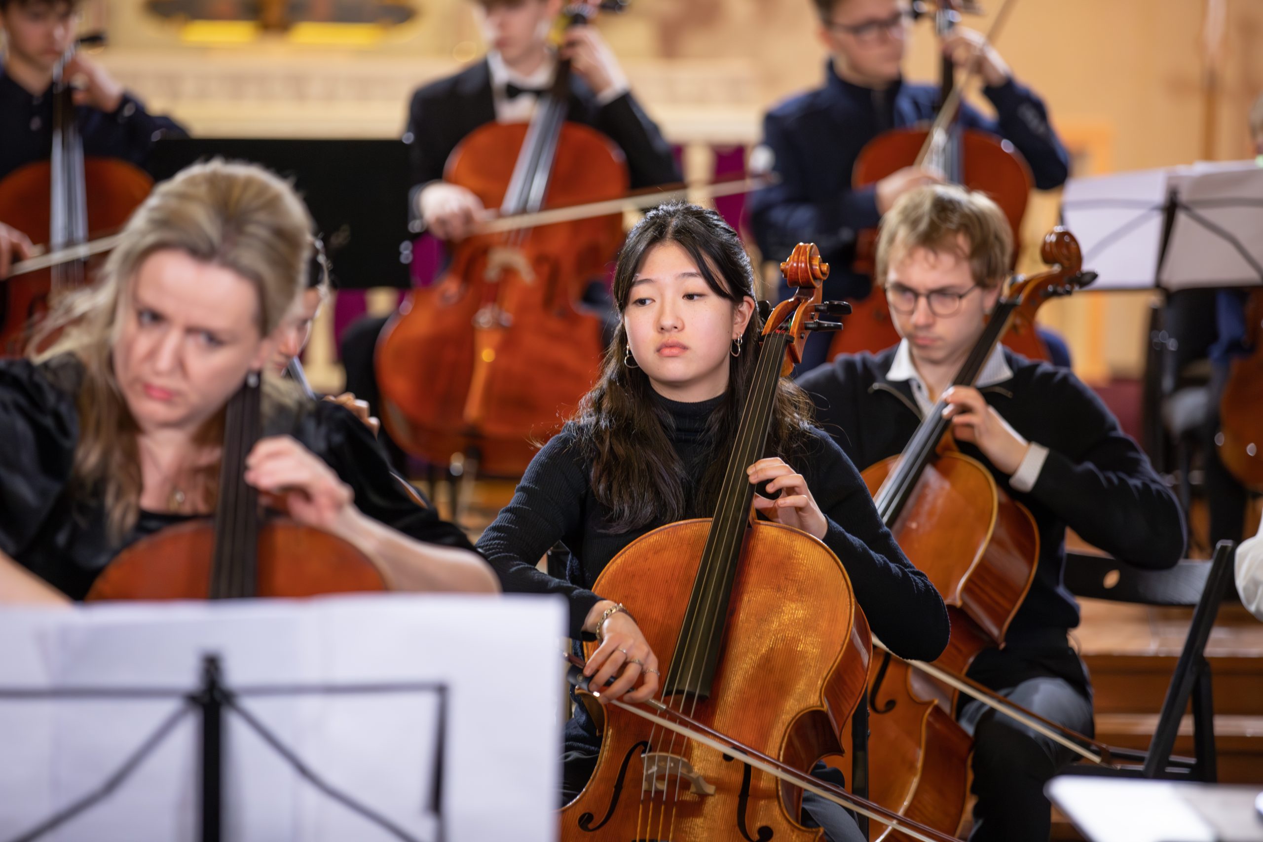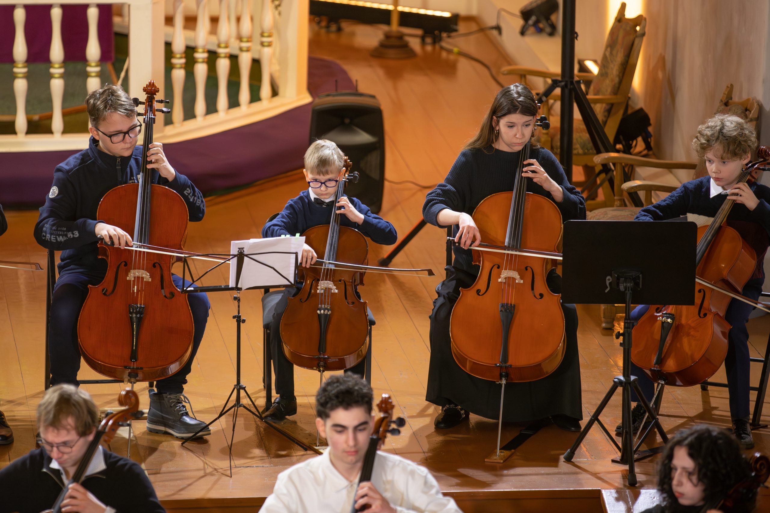 Koncertā piedalījās talantīgi jaunie čellisti no visas pasaules, kas ieradušies Kuldīgā, lai piedalītos 11. Starptautiskajā K. Davidova čellistu konkursā. Kā īpaši viesi uz skatuves kāpa izcili latviešu čellisti Kristīne Blaumane un Kristaps Bergs, kā arī pasaulē atzītais čellists, kamermūziķis, diriģents un Manheimas Mūzikas Augstskolas profesors Fransuā Gutons.