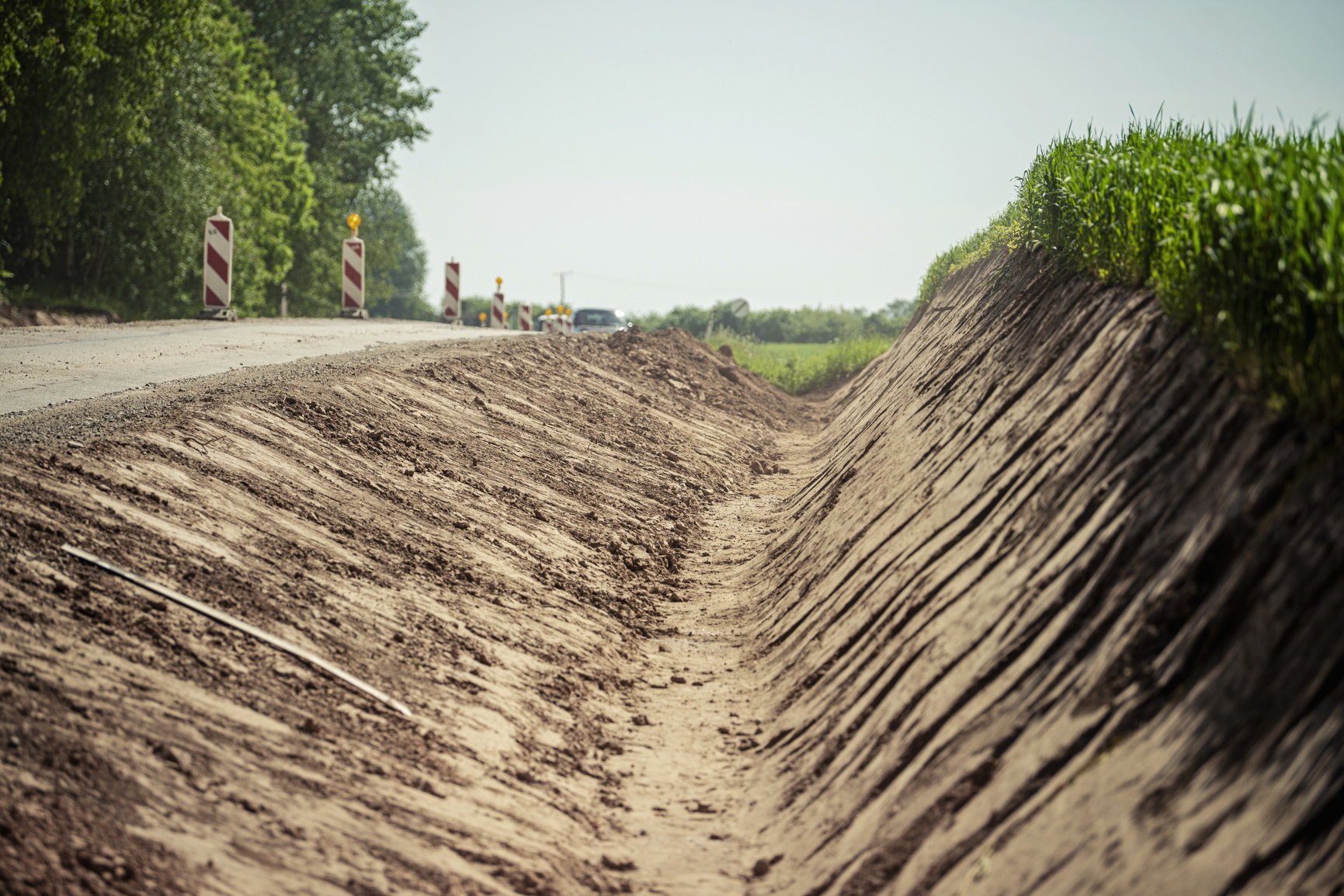 Fotoreportāža: pie Zemītes notiek ceļu būvdarbi; ar satiksmes ierobežojumiem jārēķinās līdz gada beigām