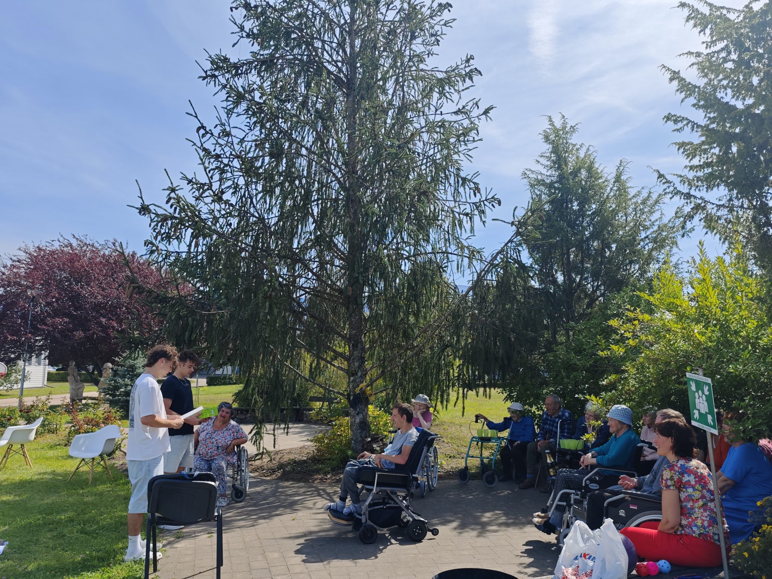 Ideja par ilgstošas sociālās aprūpes pakalpojuma saņēmēju socializēšanu Viļa Plūdoņa Kuldīgas vidusskolas 12. klases skolniekiem Mikam Maslobojevam un Kristianam Šlakorciņam radās jau iepriekšējā mācību gada laikā, domājot par vidusskolas projekta darbu. Uz tēmas aktualitāti pamudināja LR Tiesībsarga biroja kampaņa “Dzīve pansionātā – kāda tā ir?”, kurā tika aizskarts jautājums par Latvijas pansionātu iemītnieku sadzīves apstākļiem, t.sk., arī vajadzība pēc socializēšanās pasākumiem. “Painteresējoties par šo tēmu vairāk, sociālo tīklu platformā “Tik Tok” redzēju kontus, kuros tiek rādītas interesantas spēles un aktivitātes, kas veicina kustību un atmiņas saglabāšanos. Nolēmu, ka tas varētu noderēt, kā socializēšanās aktivitātes,“ pastāsta Kristians.