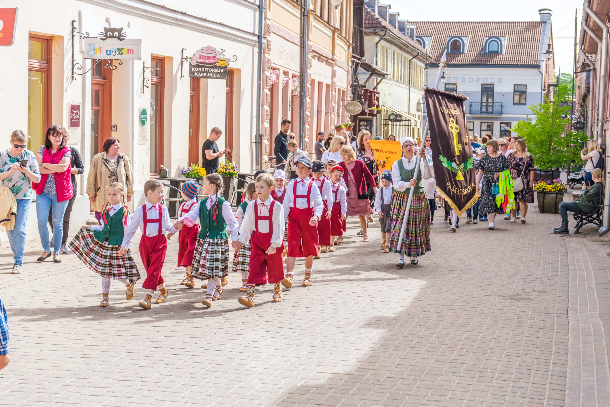Mazie dziesmu un deju svētki tika ieskandināti ar svētku gājienu. Tas sākās no Liepājas ielas gala (no kajenīcas “Kursas Zeme”), tālāk dalībniekiem virzoties pa Liepājas, Smilšu un Pētera ielām, bet galamērķis – Pilsētas estrāde. Mazos dziedātājus un dejotājus gājienā atbalstīja arī prāvs vecāku un līdzjutēju pulks. Priecīgo brīdi, atrašanos un uzstāšanos uz Pilsētas estrādes skatuves, varēja izjust vairāk nekā 400 jaunie dziedātāji un dejotāji.