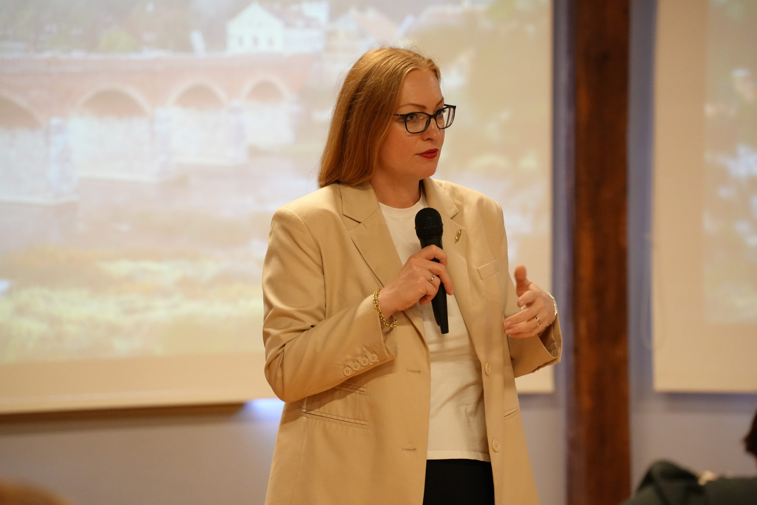 25. septembrī ar Kuldīgas novada bibliotekāriem un citiem interesentiem Kuldīgas Galvenās bibliotēkas Mākslas namā tikās Latvijas Nacionālās bibliotēkas direktore Dagnija Baltiņa.