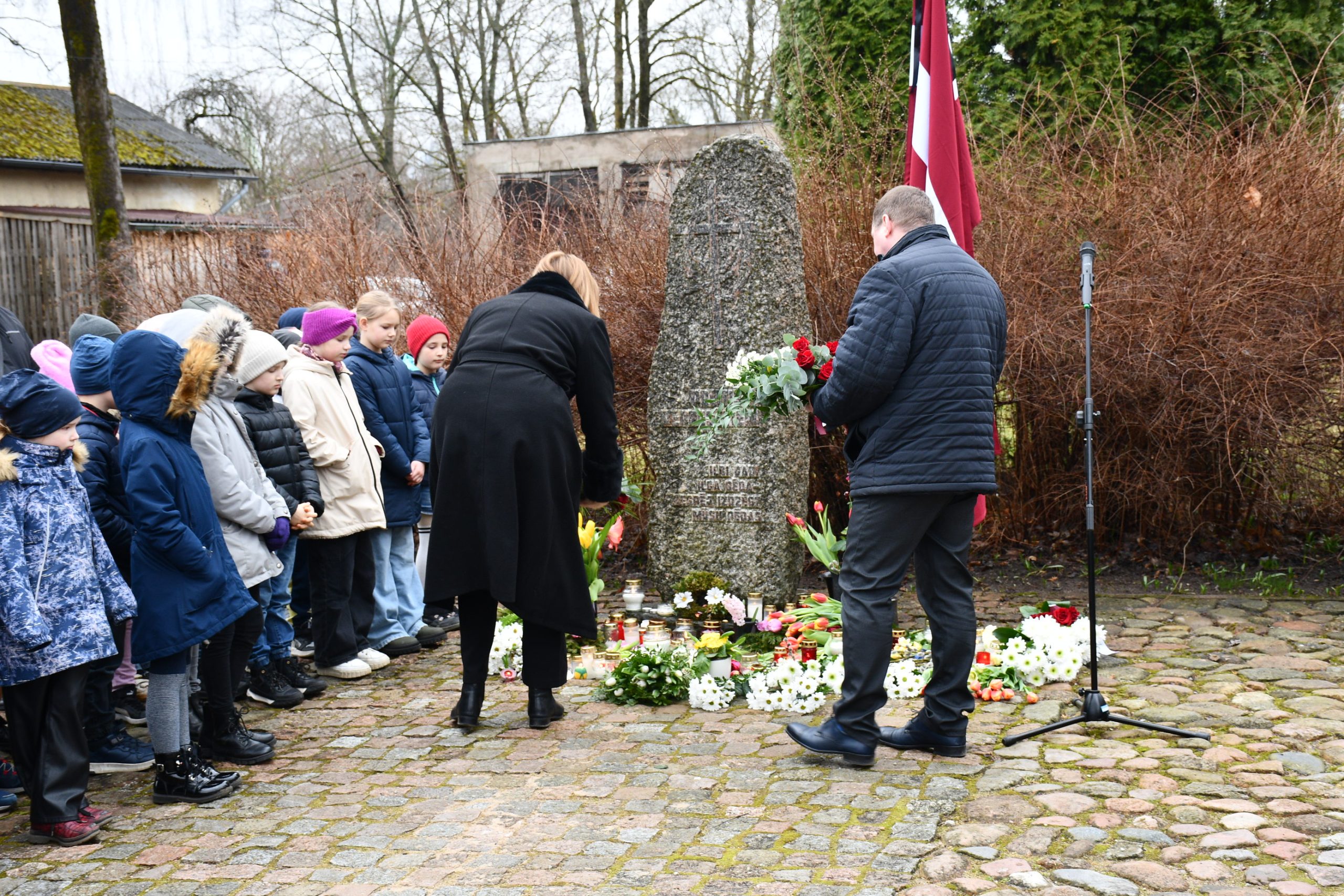 - Lēnās komunistiskā genocīda upuru piemiņas brīdis, ziedu un svecīšu nolikšana pie represēto piemiņas akmens norisināsies 12.45.