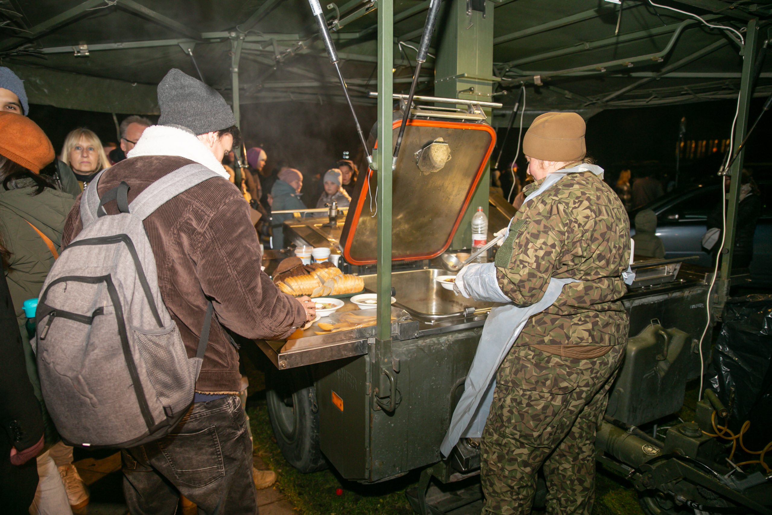 Iedzīvotājus ar svinīgu uzrunu sveica Kuldīgas novada domes priekšsēdētāja Inese Astaševska, bija iespēja dziedāt līdzi Latvijai nozīmīgām dziesmām, kā arī baudīt tēju un siltu zupu.