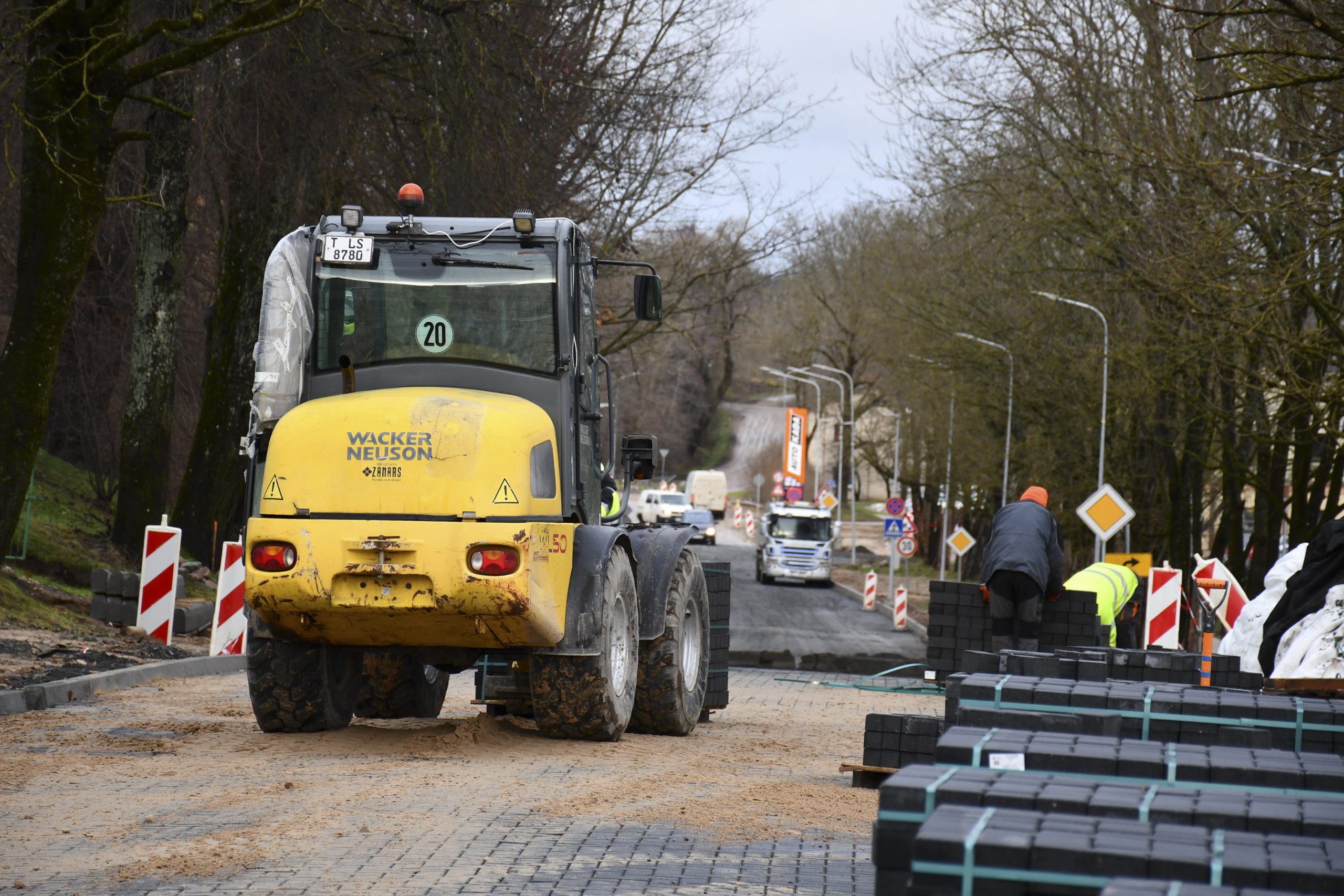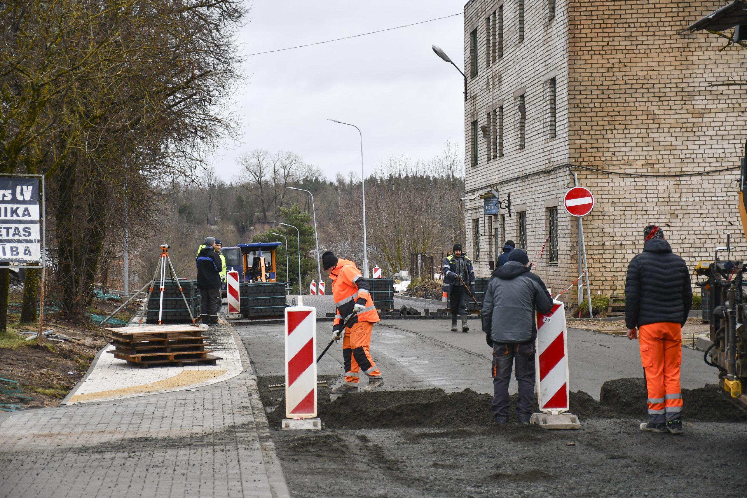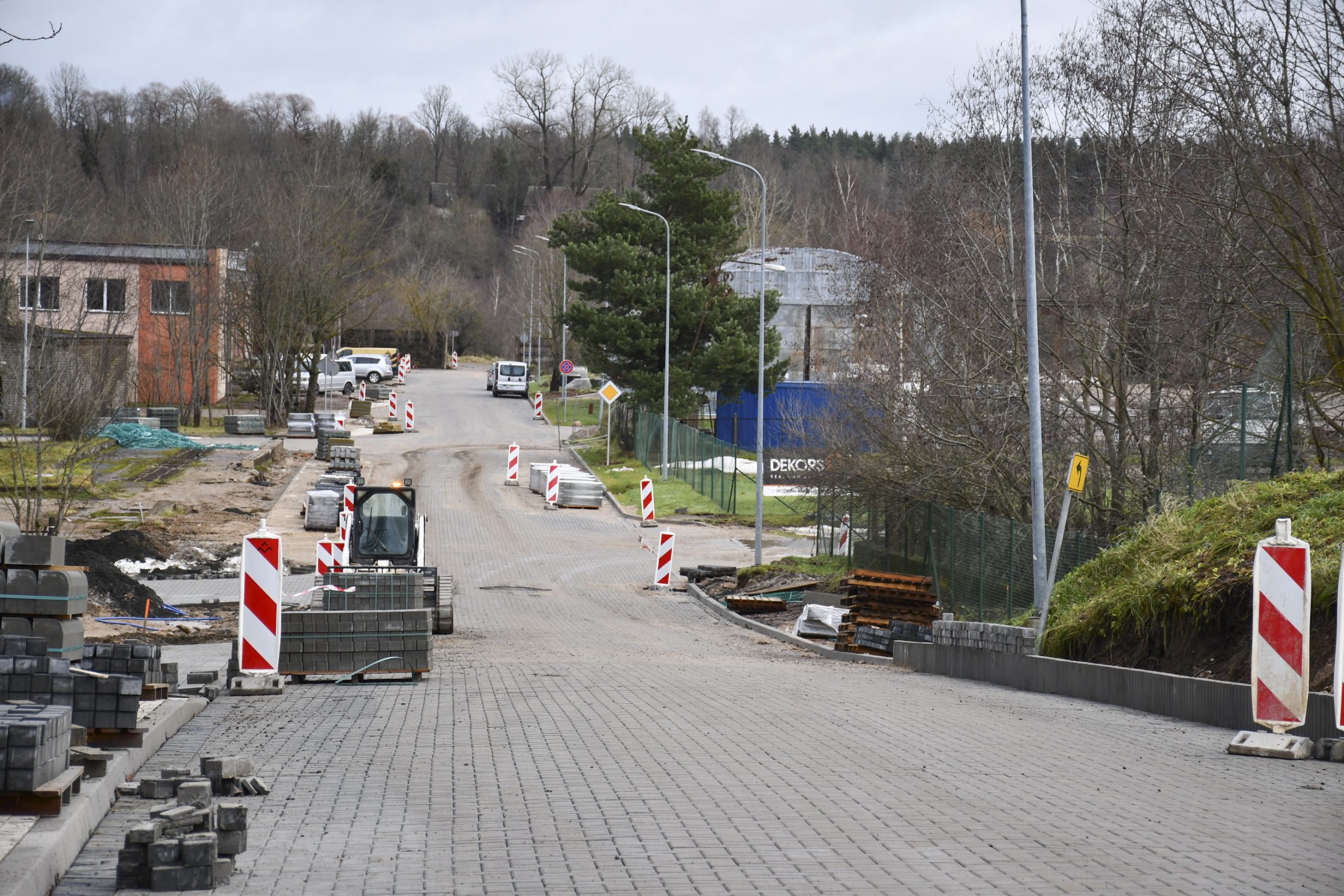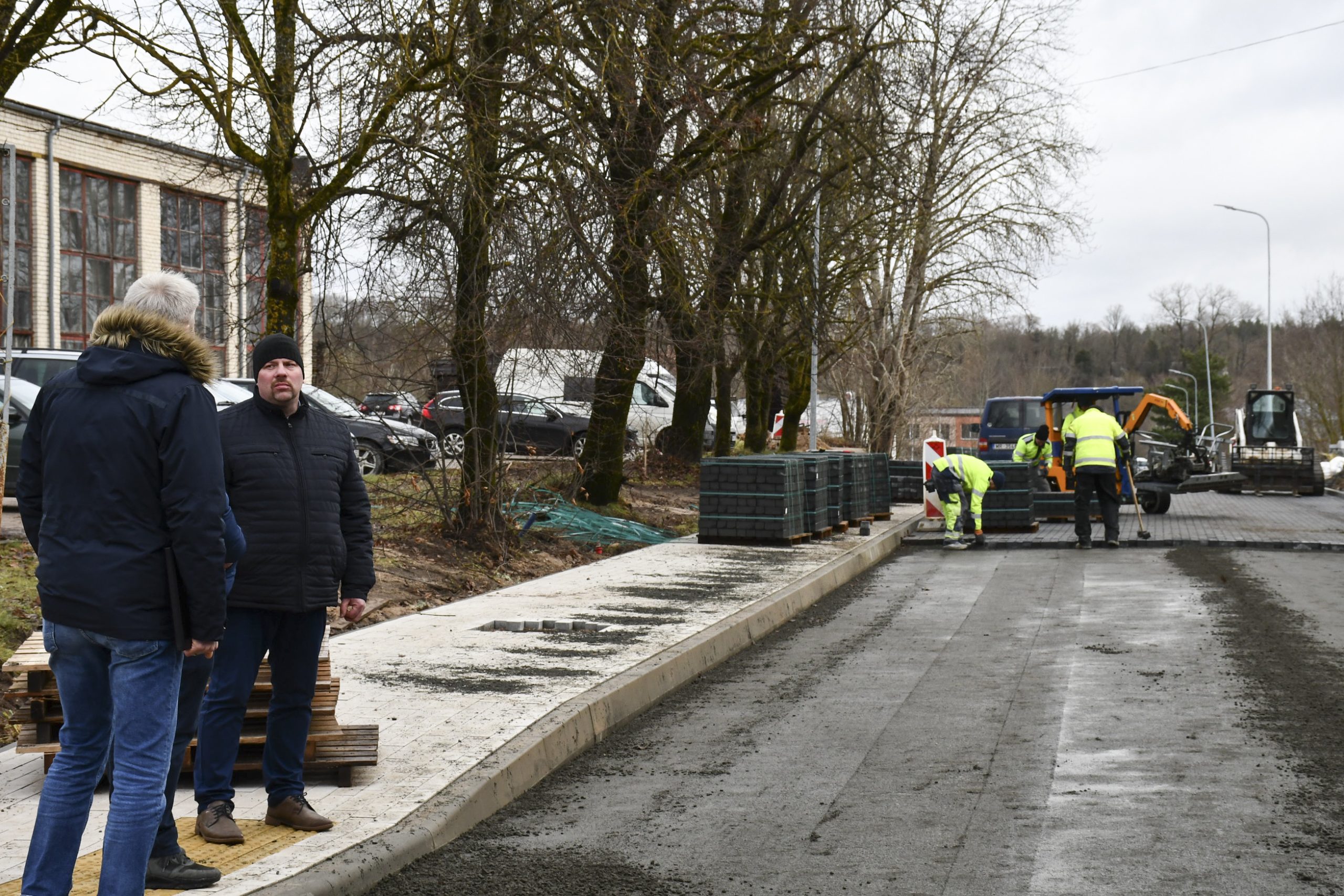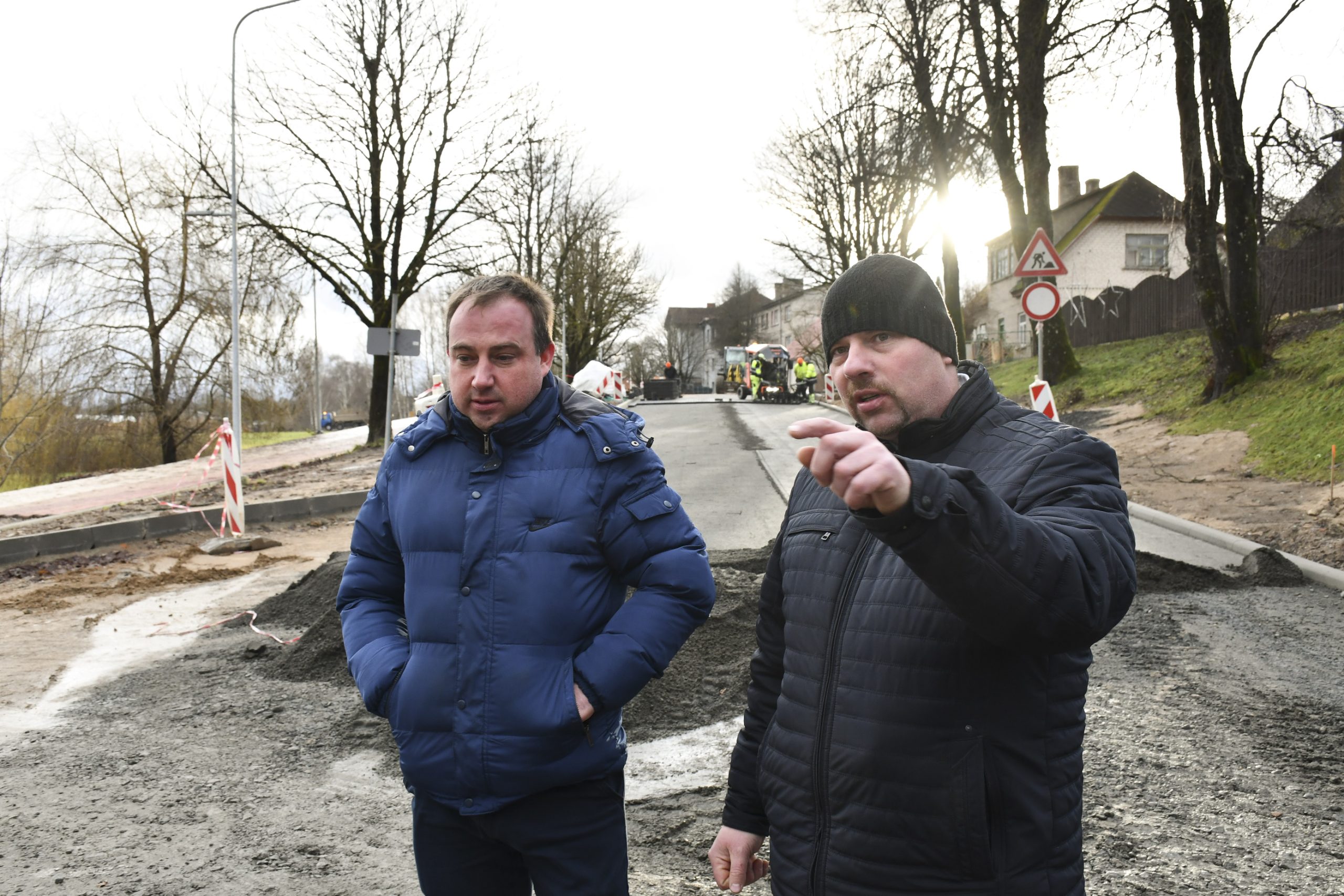 “Pēc formalitāšu nokārtošanas tikai septembrī varējām sākt būvdarbus – izbūvēt apakšzemes komunikācijas, apmales, ceļa seguma ieklāšanas darbus. Darām visu, lai darbi neapstātos un mēs pabeigtu tos atlikušajās termiņā. Plānus kavēja ziema, bet mēs būvniecību turpinām arī šādos apstākļos. Pielietojam tvaika kausēšanas iekārtas, mainām sasalušo grunti, lai varētu sagatavot pamatni seguma ieklāšanai. Darbus sarežģī arī tas, ka mums jānodrošina nepārtraukta transporta plūsma. Tāpēc, lai iespēju robežās netraucētu uzņēmējdarbībai un smagā transporta piekļuvei – mums  jāstrādā pa joslām un maziem posmiem. Ja laikapstākļi nebūs labvēlīgi, pēc brauktuvju pabeigšanas, labiekārtošanas darbus turpināsim pavasarī – izbūvēsim ietves, apzaļumosim piegulošo teritoriju, ” saka M. Grundmanis.