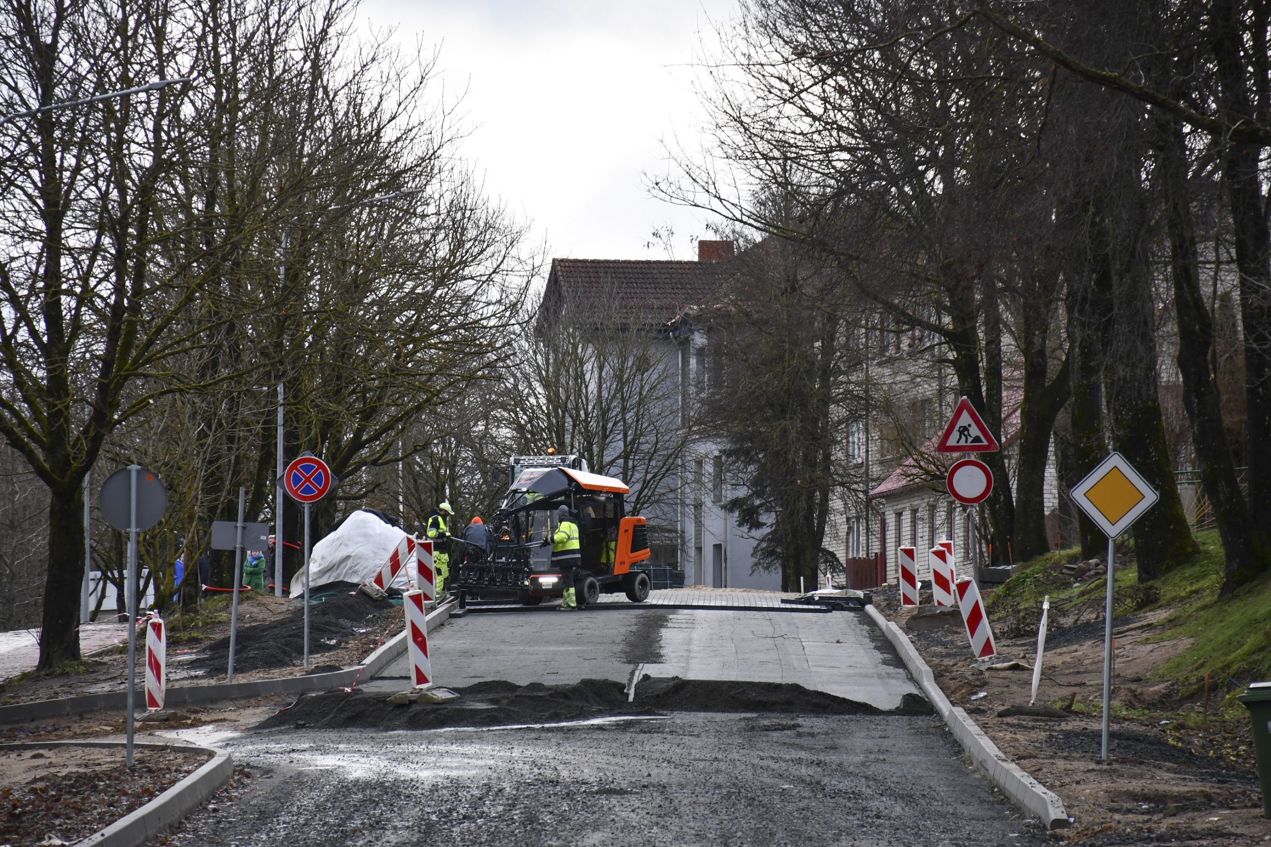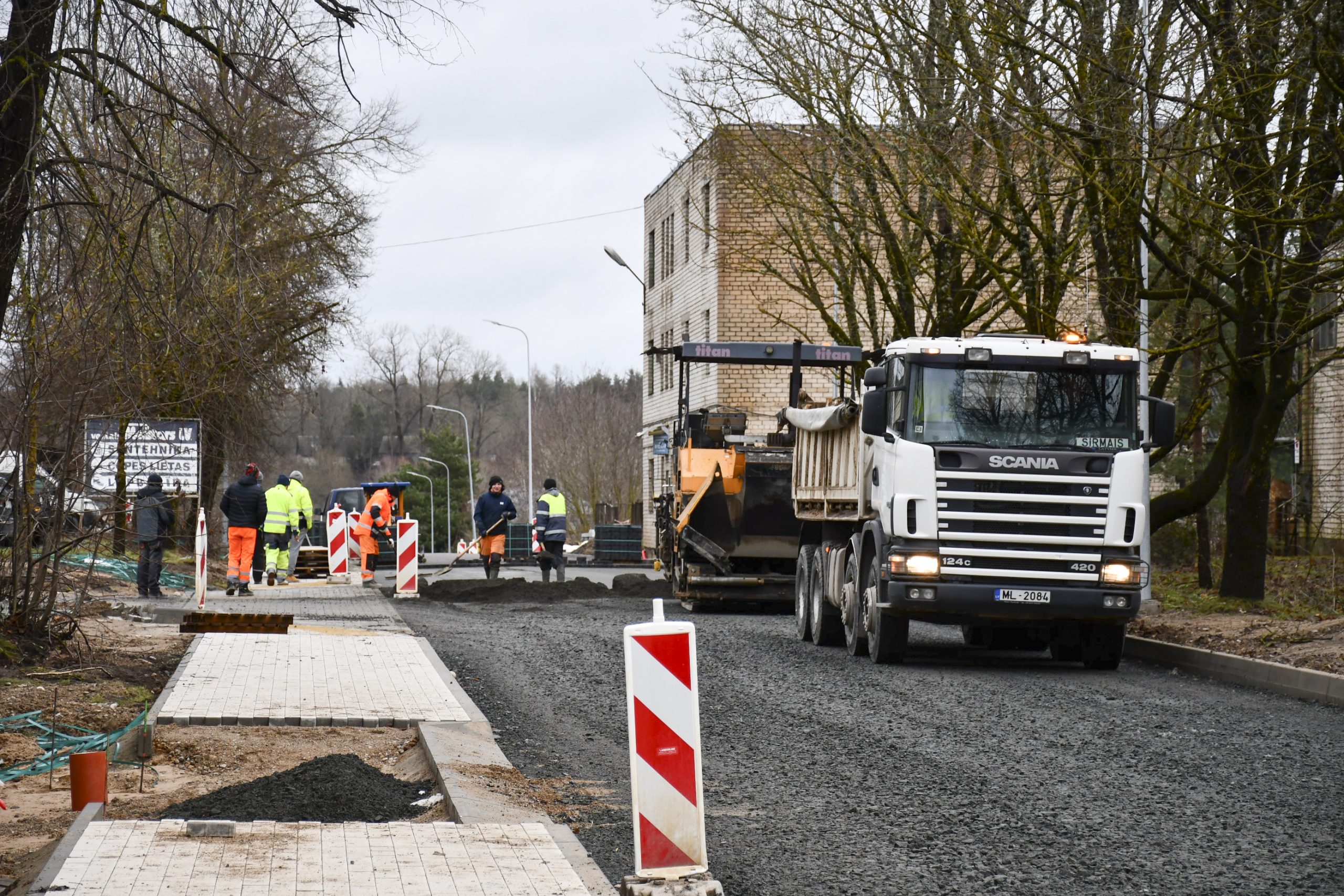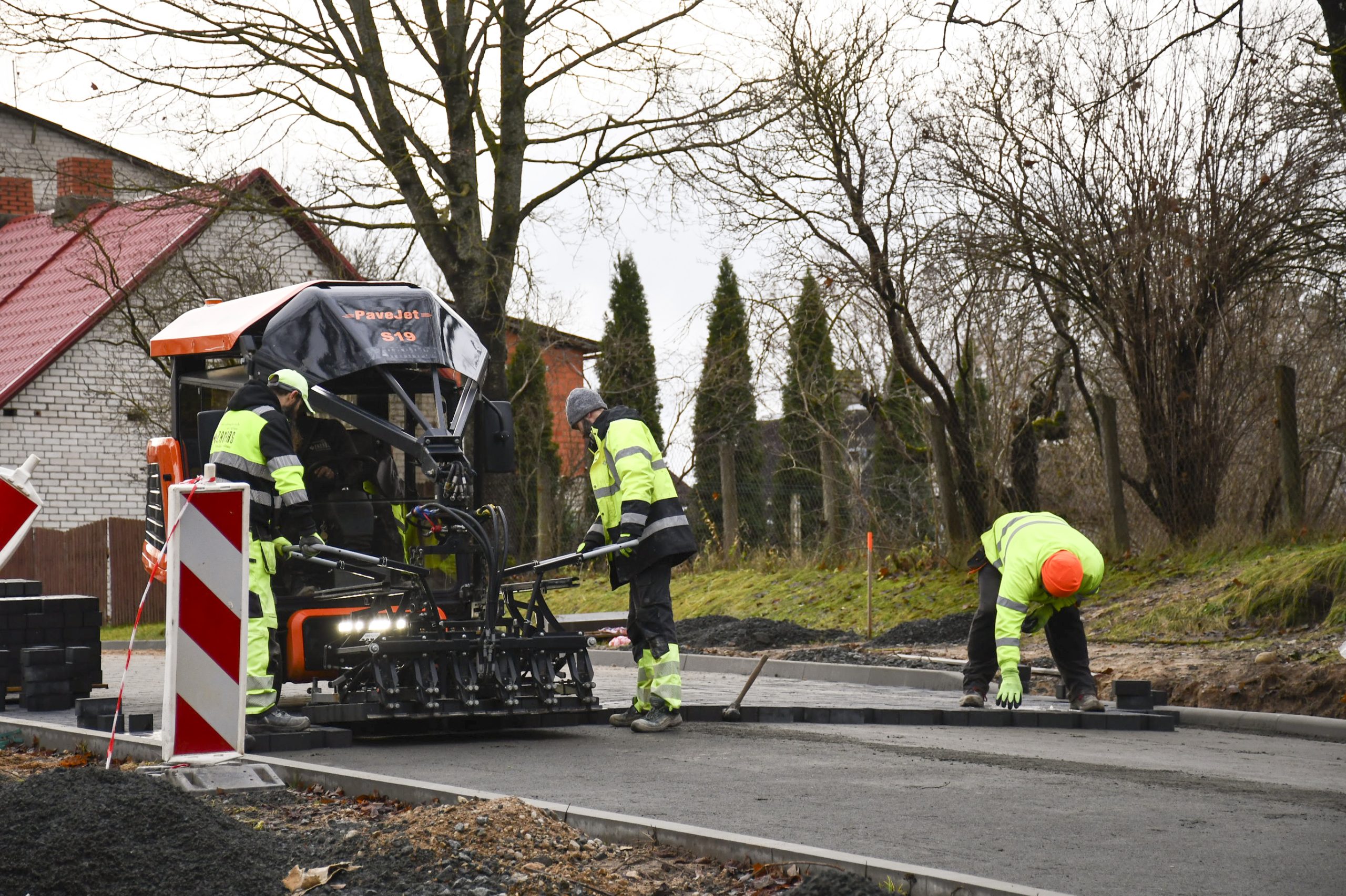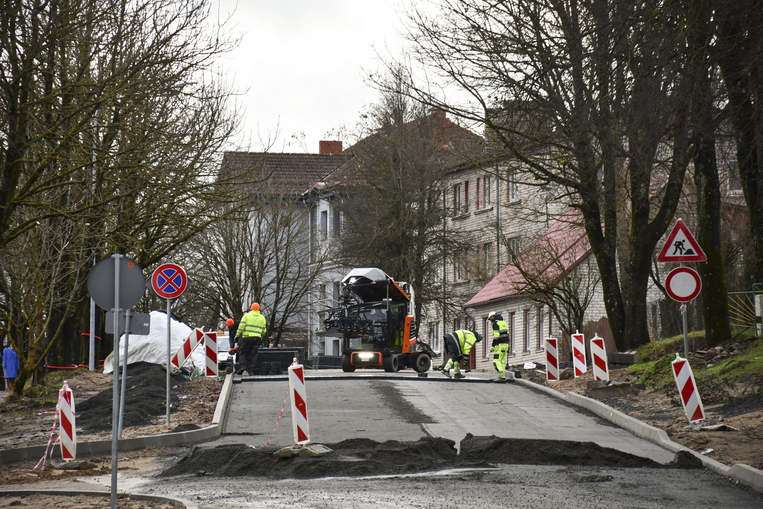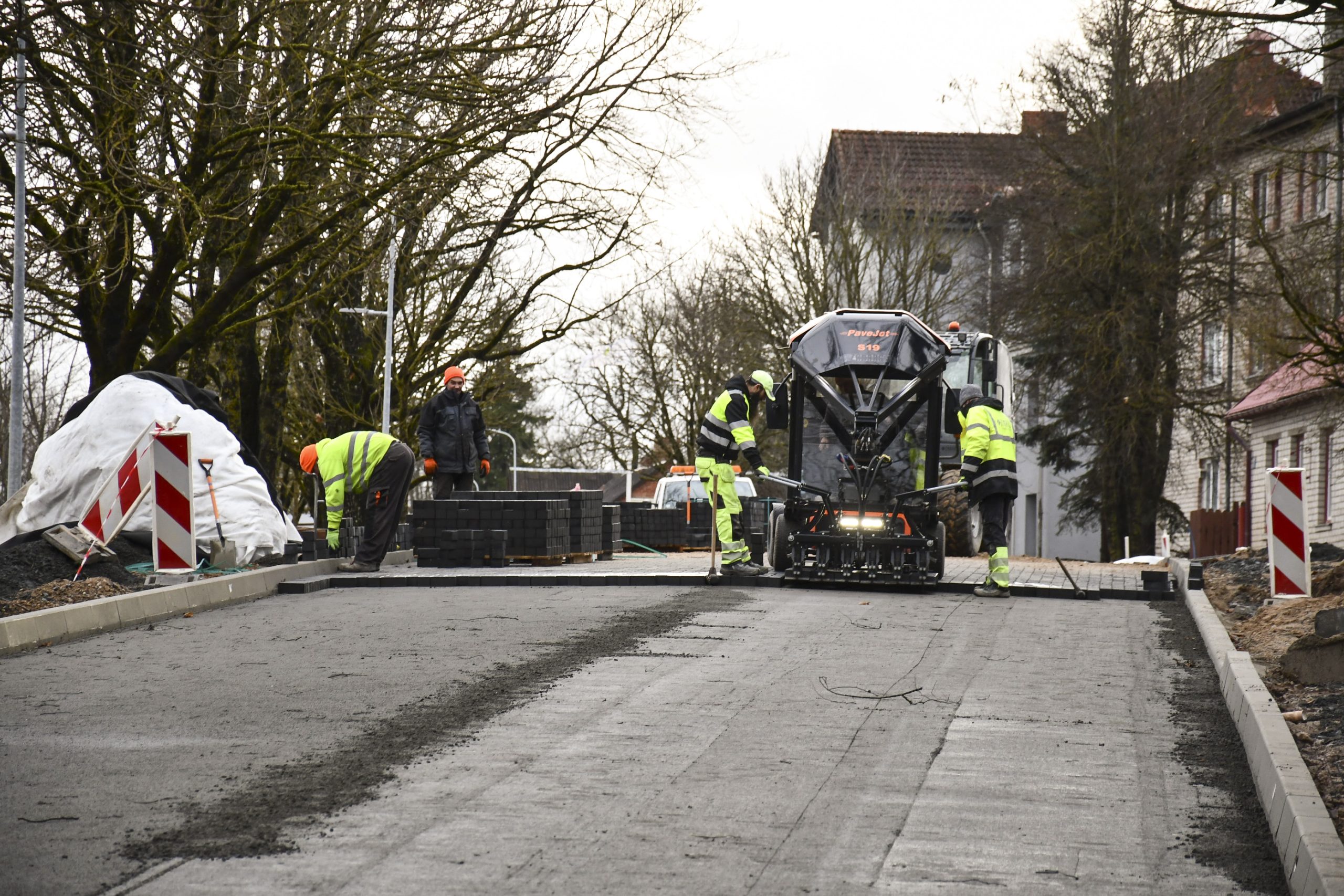 “Pēc formalitāšu nokārtošanas tikai septembrī varējām sākt būvdarbus – izbūvēt apakšzemes komunikācijas, apmales, ceļa seguma ieklāšanas darbus. Darām visu, lai darbi neapstātos un mēs pabeigtu tos atlikušajās termiņā. Plānus kavēja ziema, bet mēs būvniecību turpinām arī šādos apstākļos. Pielietojam tvaika kausēšanas iekārtas, mainām sasalušo grunti, lai varētu sagatavot pamatni seguma ieklāšanai. Darbus sarežģī arī tas, ka mums jānodrošina nepārtraukta transporta plūsma. Tāpēc, lai iespēju robežās netraucētu uzņēmējdarbībai un smagā transporta piekļuvei – mums  jāstrādā pa joslām un maziem posmiem. Ja laikapstākļi nebūs labvēlīgi, pēc brauktuvju pabeigšanas, labiekārtošanas darbus turpināsim pavasarī – izbūvēsim ietves, apzaļumosim piegulošo teritoriju, ” saka M. Grundmanis.