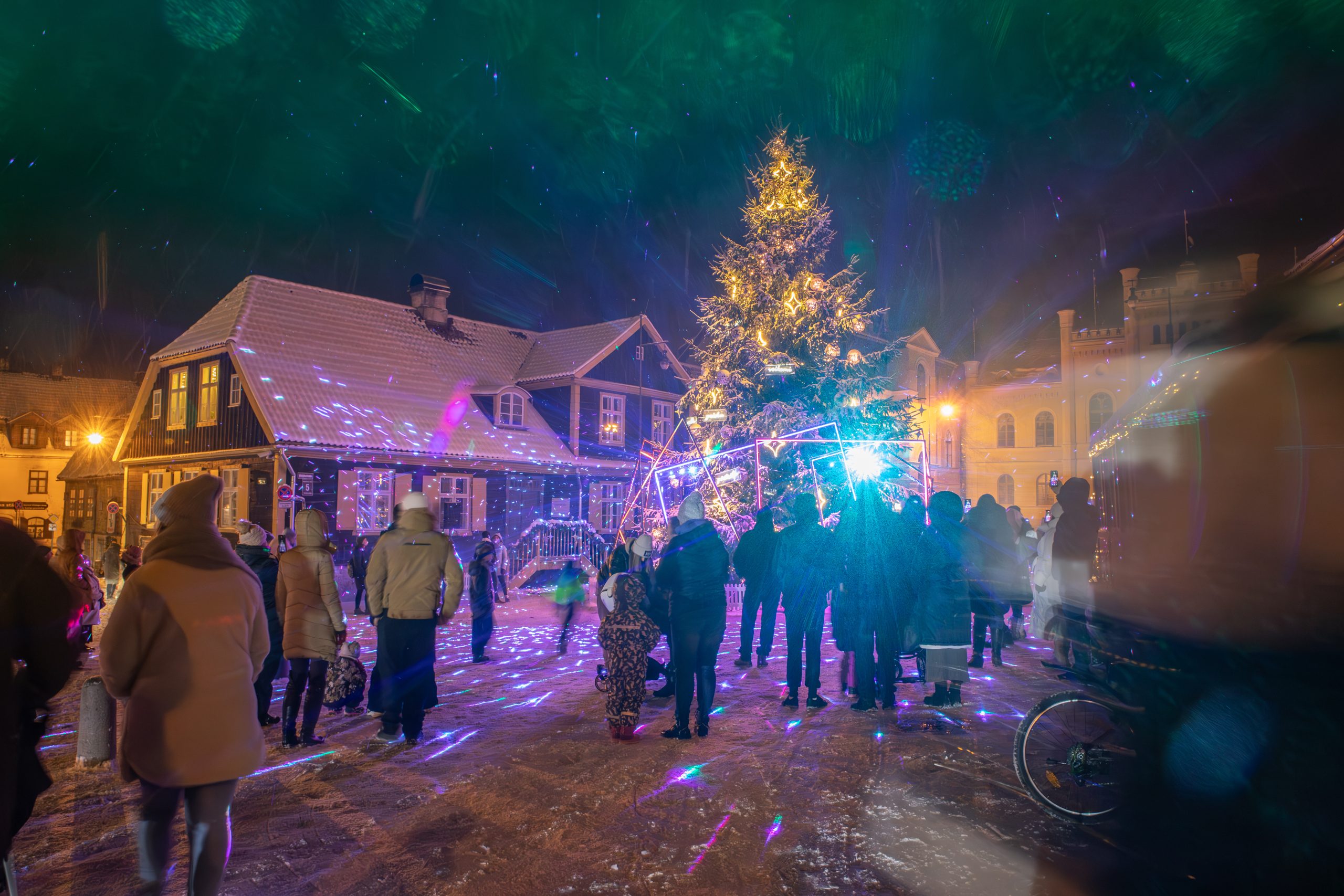 2.decembra pievakarē Rātslaukumā pilnā krāšņumā iemirdzējās Kuldīgas galvenā svētku egle. Košajai skaistulei iedegties neskaitāmu lampiņu gaismā palīdzēja pats Ziemassvētku vecītis un viņa jautrie rūķīši, kuri ziemas festivālā “Notici brīnumam” ar dziesmām un dejām pamanījās uzburt pasakainu atmosfēru.
